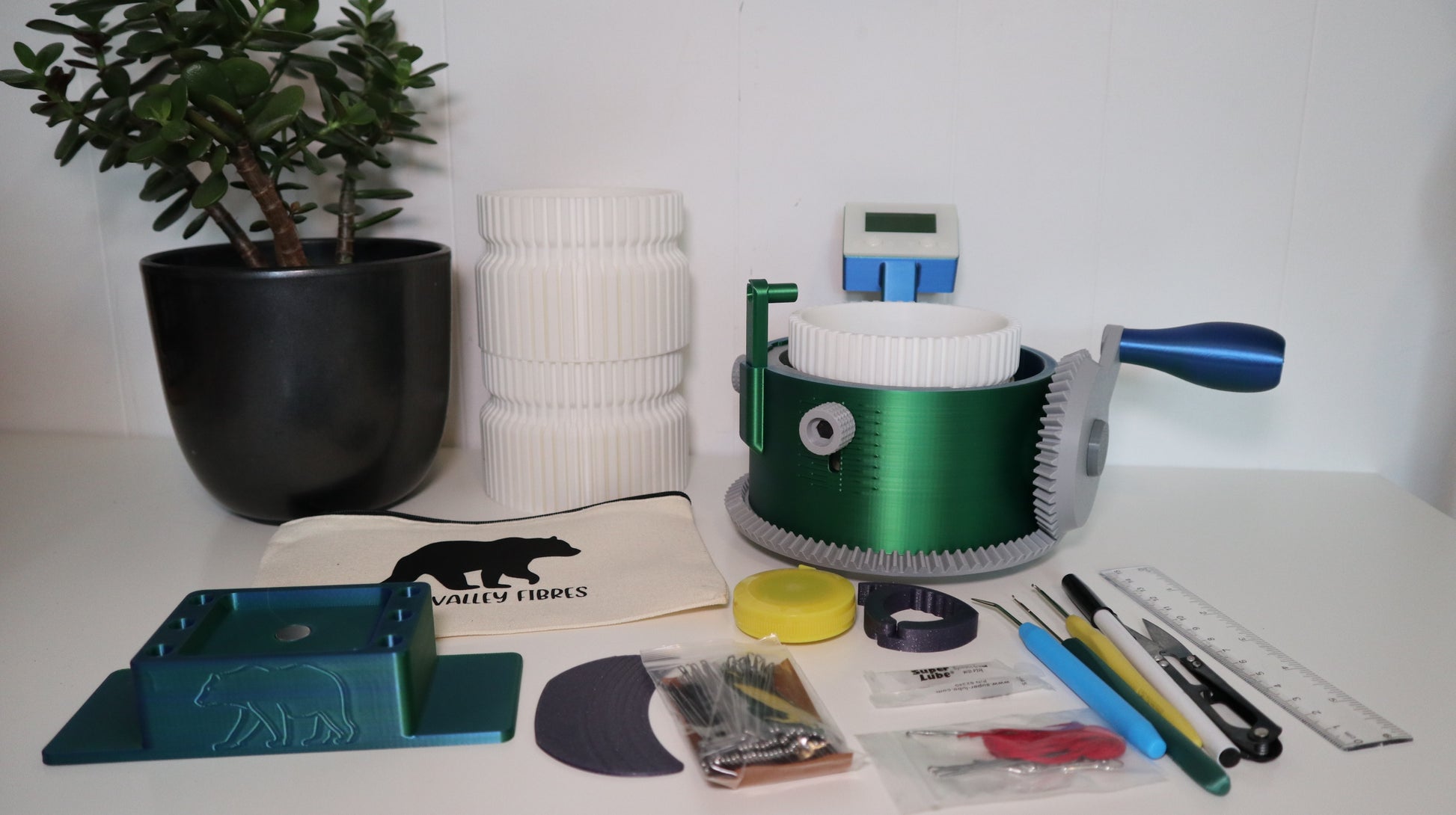 Although they are helpful to have on hand the setup bonnets, weights and other accessories are available for purchase separately. If you would like a different size of cylinder, they are also available to purchase separately, just make sure you order extra needles so you have enough!