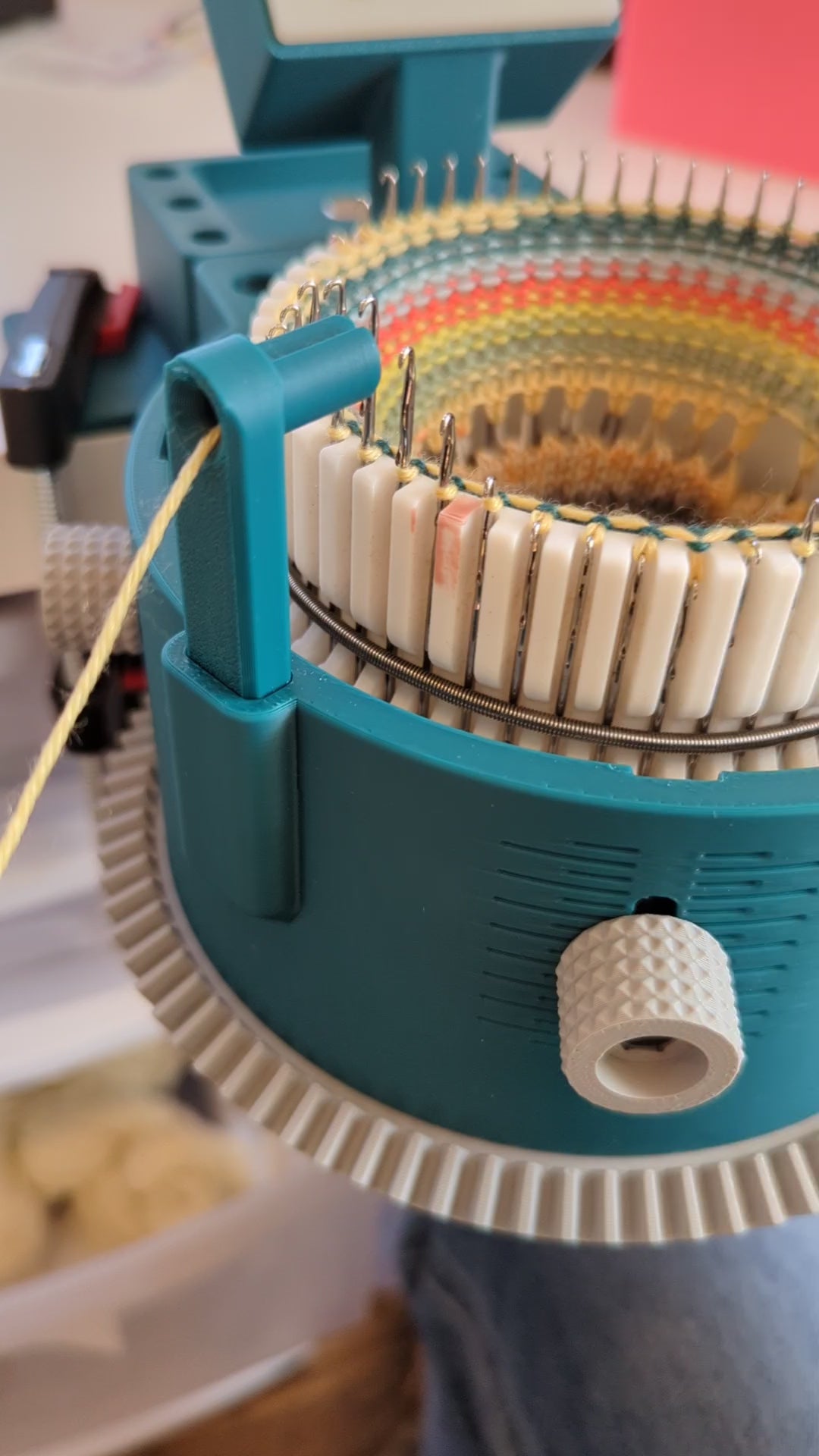 This Sock Knitting Machine was designed for ease of use. With quick-removable cams, yarn guide and row counter, you have full unimpeded access to every needle without any extra complicated steps, tools or machine disassembly. The machine can be clamped onto the edge of a table or desk for usage and easily removed and stored once finished. The machine is modular and upgradable, too!