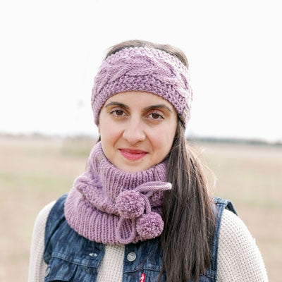 The first patterns shown are The Kennedy Cowl and The Kennedy Warmer by Nicole Kliner.